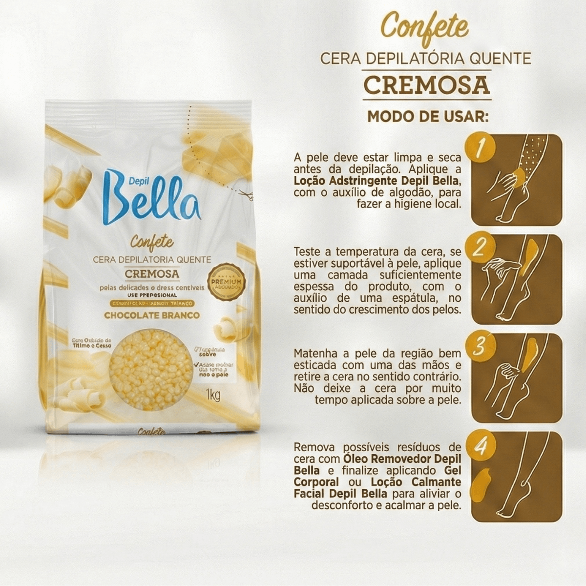 As Ceras Depilatórias Confete Depil Bella® possuem composição com ativos naturais e especiais em uma formulação diferenciada.