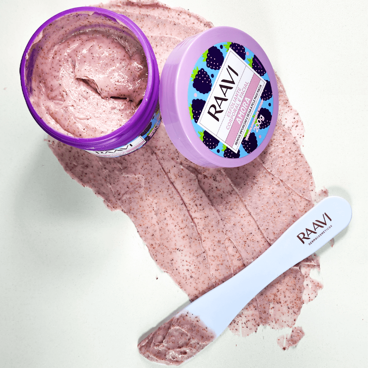 Enriquecido com Extrato natural de Amora, Batata Doce Roxa e Manteiga de Karité, o esfoliante possui textura hidratante que proporciona nutrição intensa, ação antioxidante, ajudando a combater os radicais livres e sensação de pele profundamente cuidada.