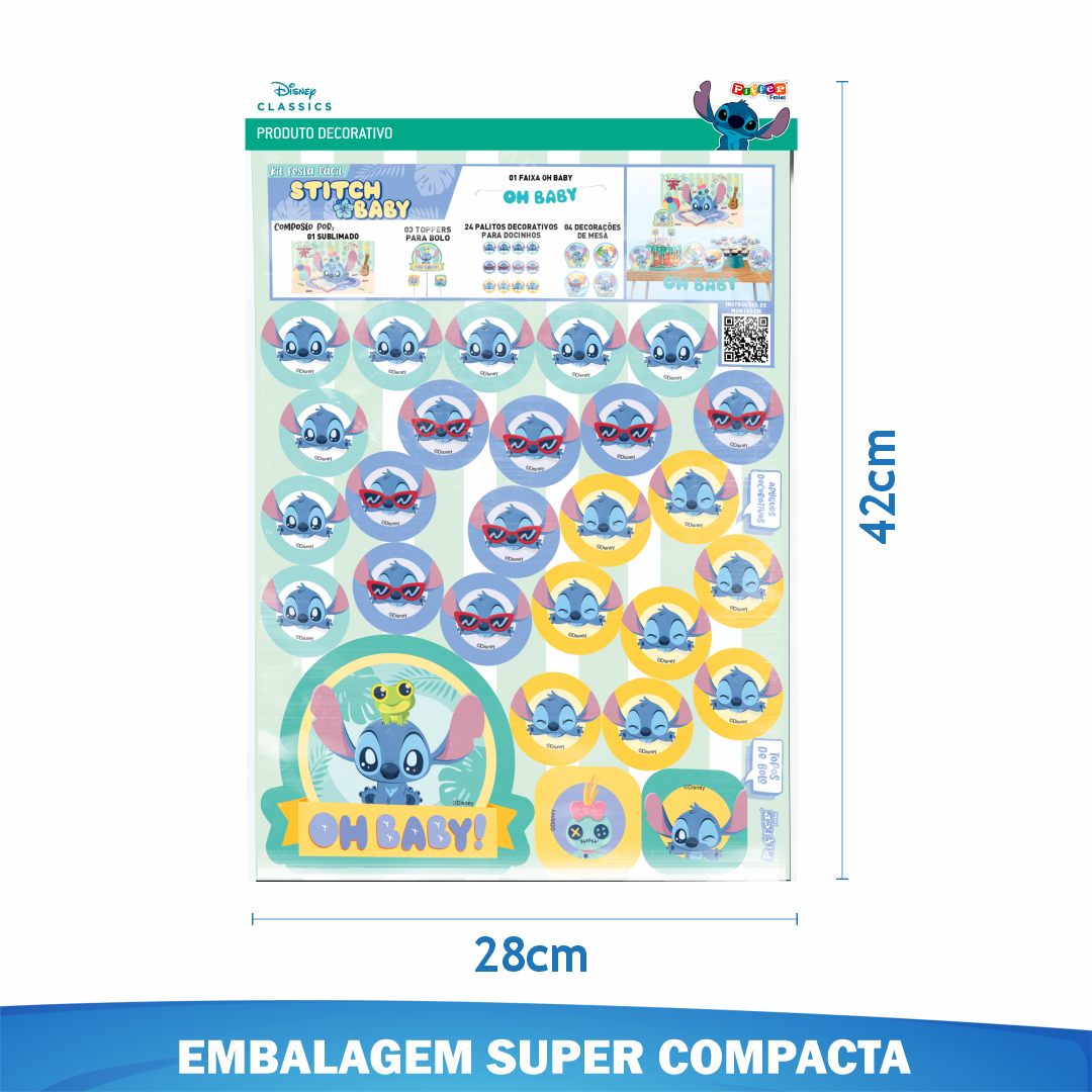Deixe a decoração da sua festa ainda mais encantadora com o Kit Festa Econômico Stitch Baby! Ideal para festas infantis e chás de bebê, este conjunto traz os elementos principais para uma comemoração divertida e personalizada com o adorável personagem Stitch em versão baby.