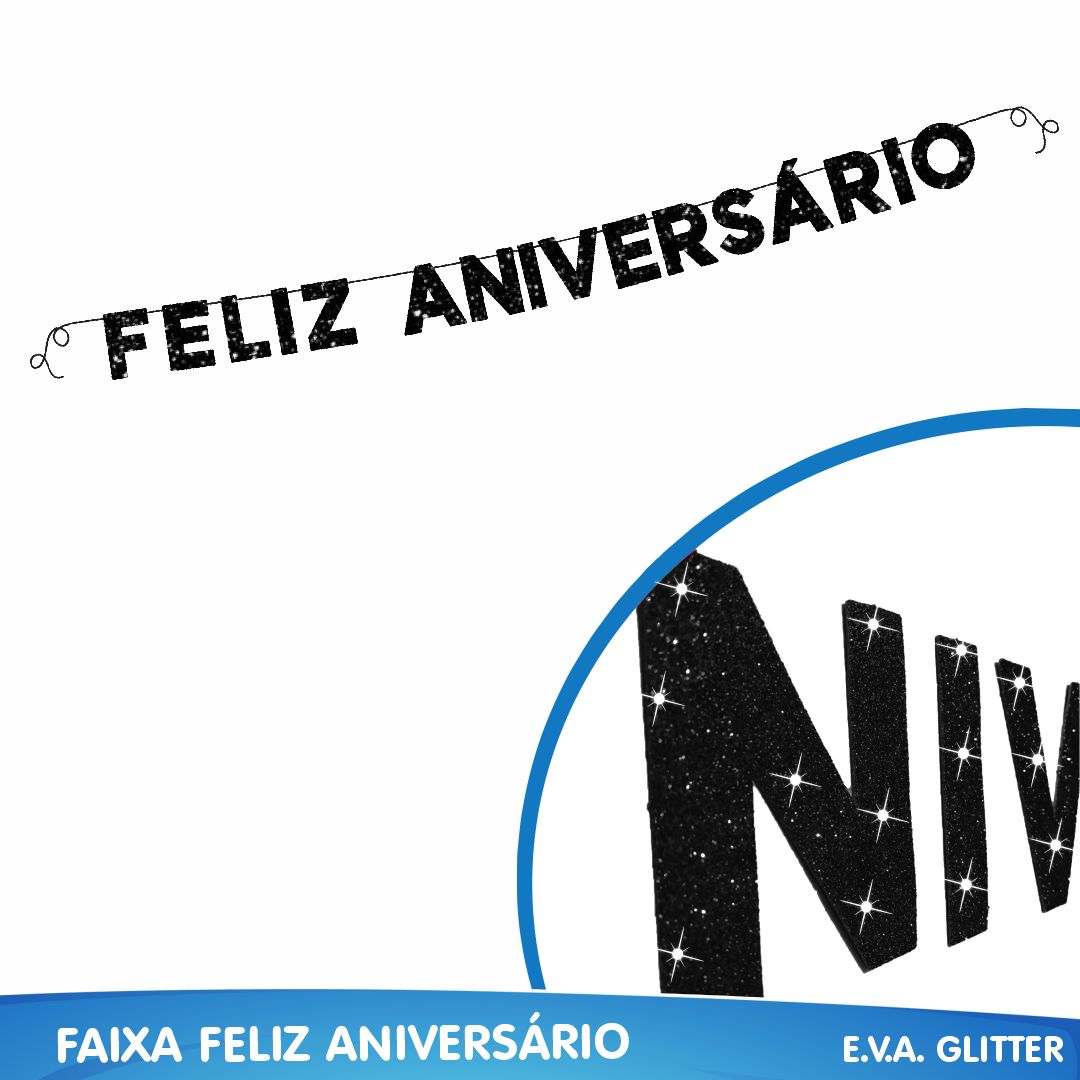 01 Faixa “Feliz Aniversário” em glitter – pronta para pendurar