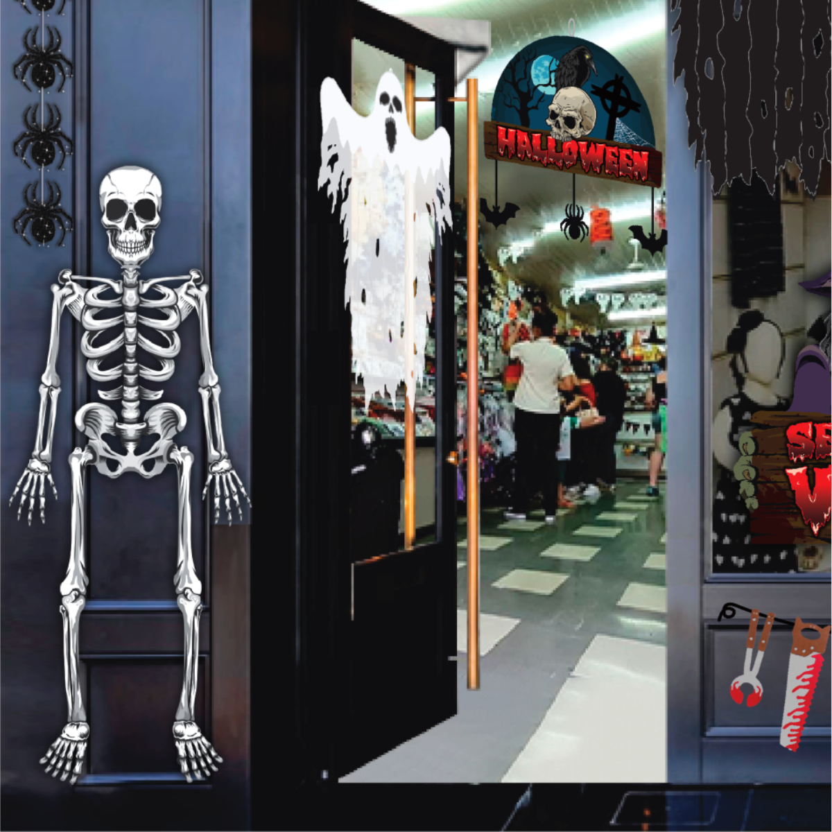 Combine com teias, luzes ou sangue falso para intensificar o efeito horripilante.