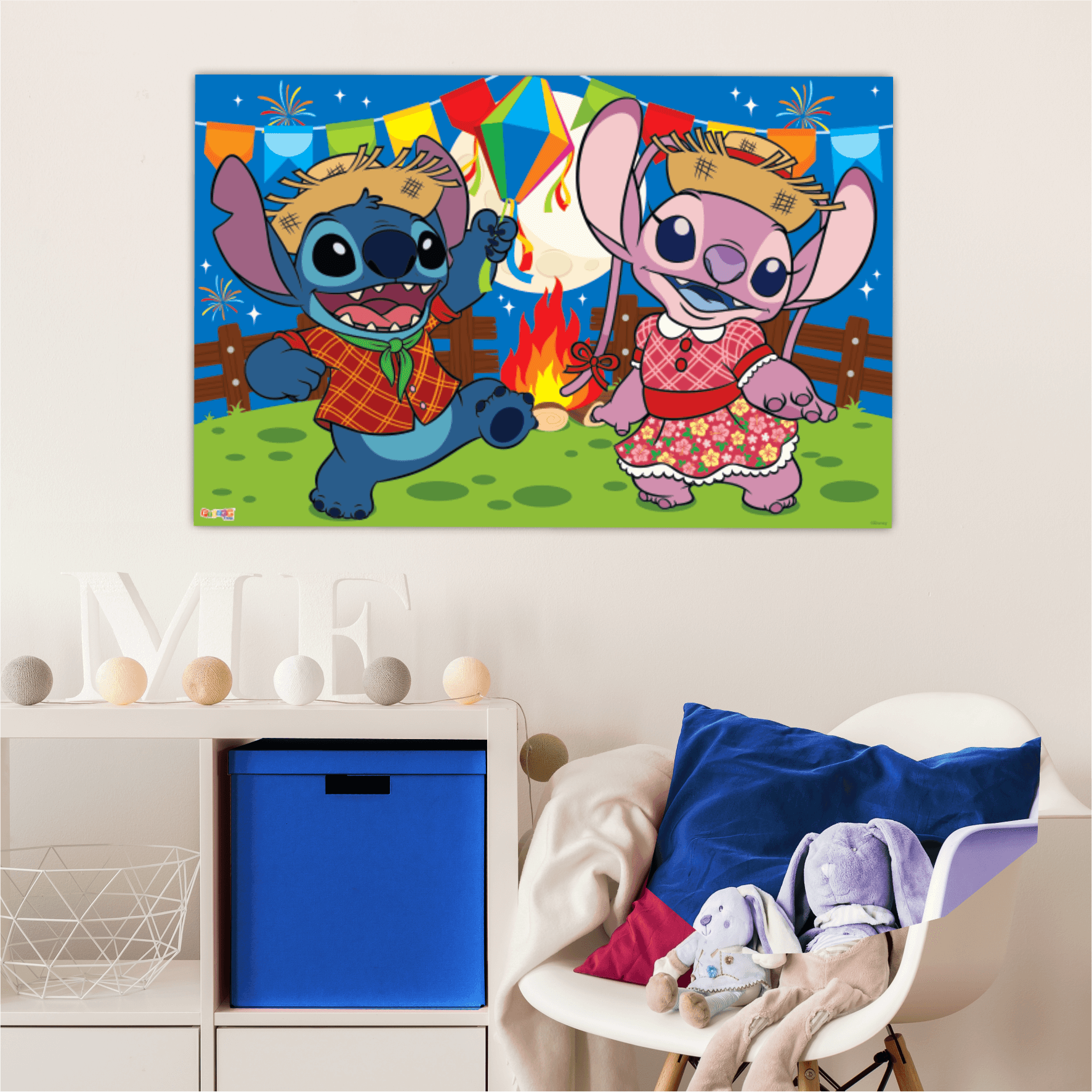 Crie um cenário encantador e divertido com o Painel Sublimado Stitch Junino! Com ilustrações vibrantes do Stitch e da Angel vestidos para o arraiá, este painel é ideal para compor a decoração da sua festa junina. Ele traz toda a alegria típica da celebração com fogueira, bandeirinhas e estampas coloridas.