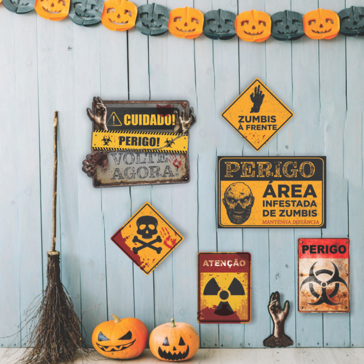 O Painel Horripilante Halloween Zumbis transforma qualquer espaço em um cenário digno de filme de terror, garantindo arrepios e muitas fotos assustadoras. É impossível não sentir que, a qualquer momento, essas criaturas vão ganhar vida e se aproximar.