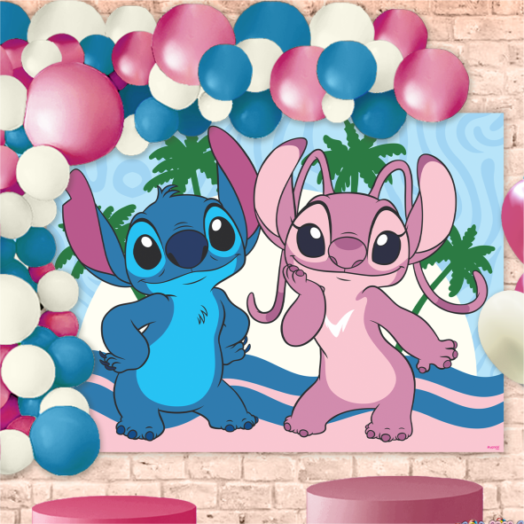 Painel TNT Stitch e Angel 1,40 x 1,03m - Decoração de Festa